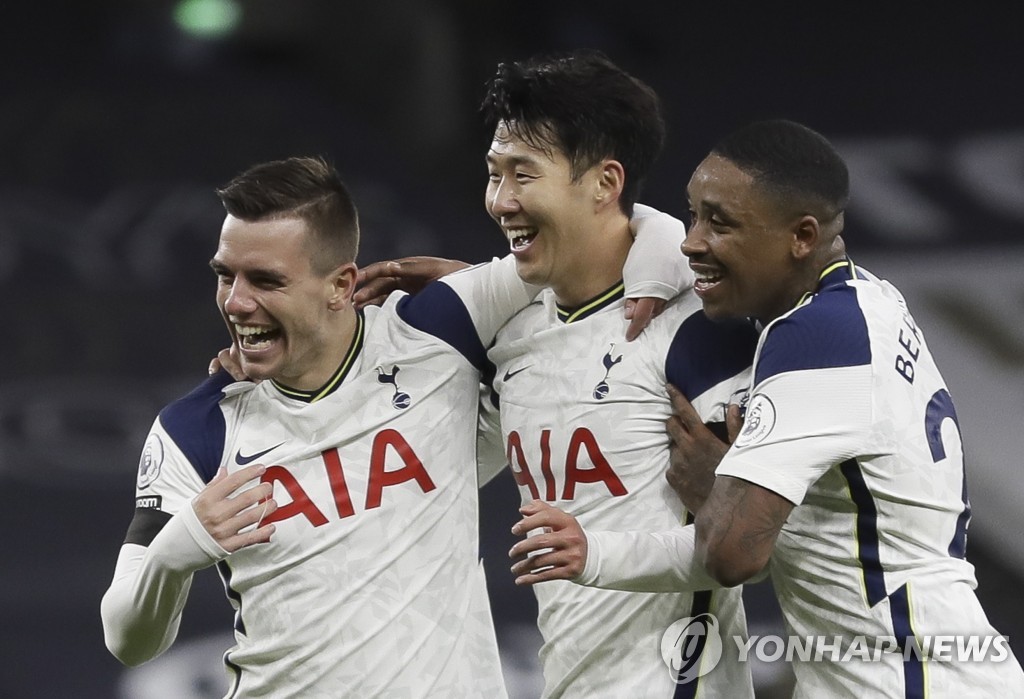 | ▲ 2020년 골을 넣고 기뻐하는 손흥민(가운데)과 베르흐베인(오른쪽) [EPA=연합뉴스] |