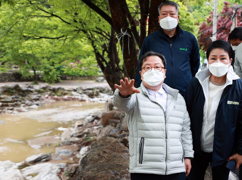 | ▲ 남양주시, 팔현천에 밸리 리조트 조성 (남양주=연합뉴스) 조광한(왼쪽) 경기 남양주시장과 백선아(오른쪽) 시의원이 밸리 리조트가 조성될 팔현천 일대를 둘러보고 있다. 2021.5.9 [남양주시 제공. 재판매 및 DB 금지] |