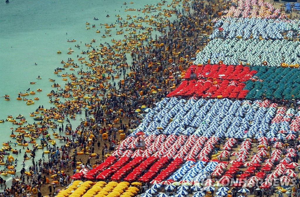 | ▲ 2008년 8월 2일 기네스북에 등재된 부산 해운대 파라솔 물결 [조정호 기자] |