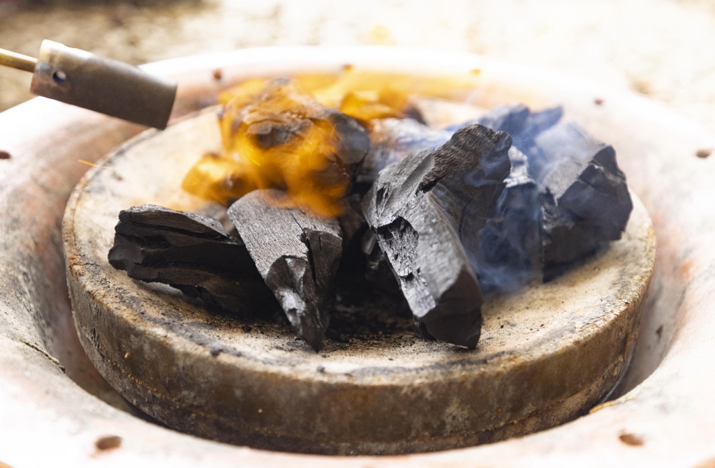 | ▲ 참숯에 불을 붙이는 장면 [사진/성연재 기자] |