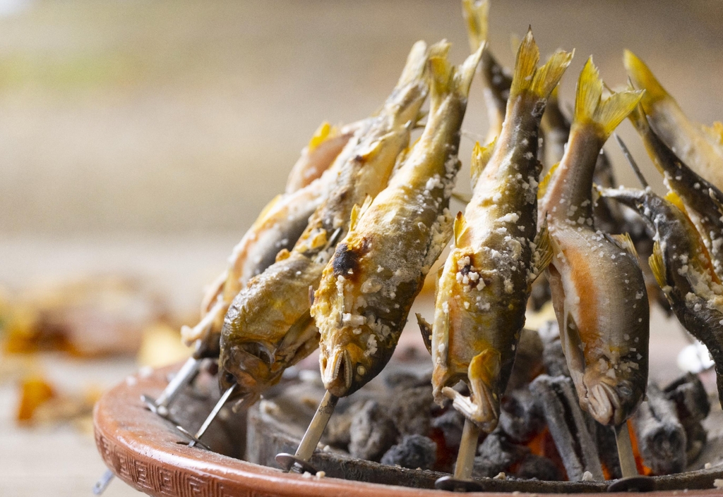 (서울=연합뉴스) 성연재 기자 = 빨간 숯불이 타는 화로 위에서 은어(銀魚)가 익어간다.
