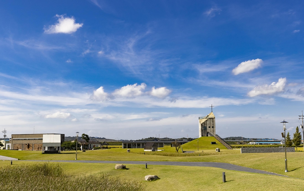 드넓은 잔디밭이 인상적인 신리성지는 선교사들의 비밀 입국처로 활용된 지역이었다.