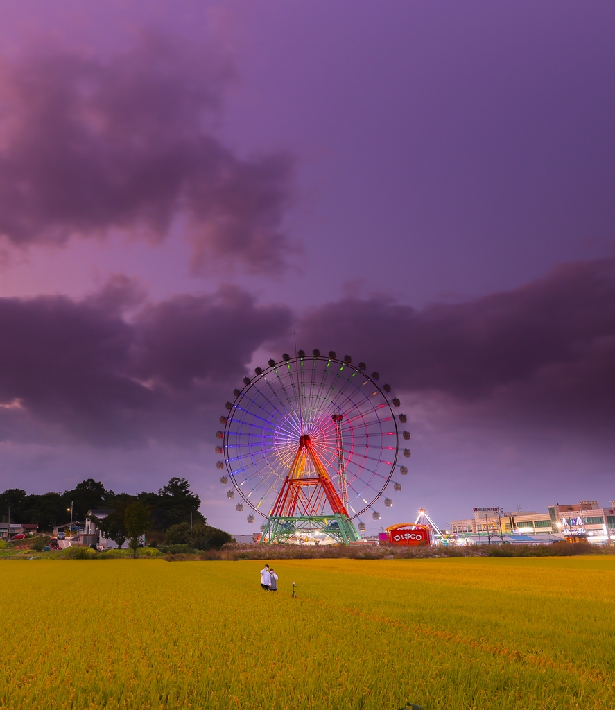 대도시 한가운데 있어야 할 놀이동산의 대관람차가 벼가 누렇게 익어가는 곳에서 돌아가는 장면은 비현실적인 느낌마저 든다.