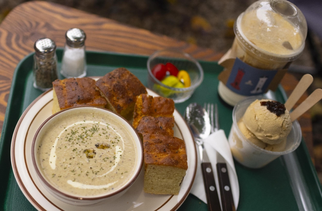 영덕 자연산 송이 수프와 영덕 송이 크림 라떼 등 이곳만의 특색있는 먹거리를 몇 가지 주문했다.
