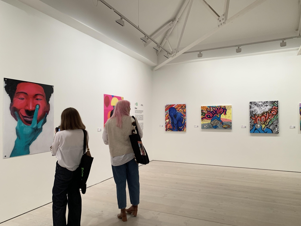 | ▲ (런던=연합뉴스) 최윤정 특파원 = 13일(현지시간) 영국 런던 사치 갤러리에서 시작한 스타트 아트페어에서 K-팝 스타들의 작품을 보는 관람객들. 2021.10.18 merciel@yna.co.kr |