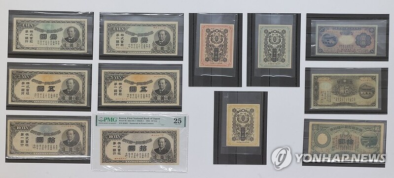 1902년 한국 정부(대한제국)의 승인 없이 일본 당국의 승인만 받고 발행한 1·5·10원(圓) 지폐부터 1904년 봉황, 용 문양 등이 더해진 지폐가 포함됐다.