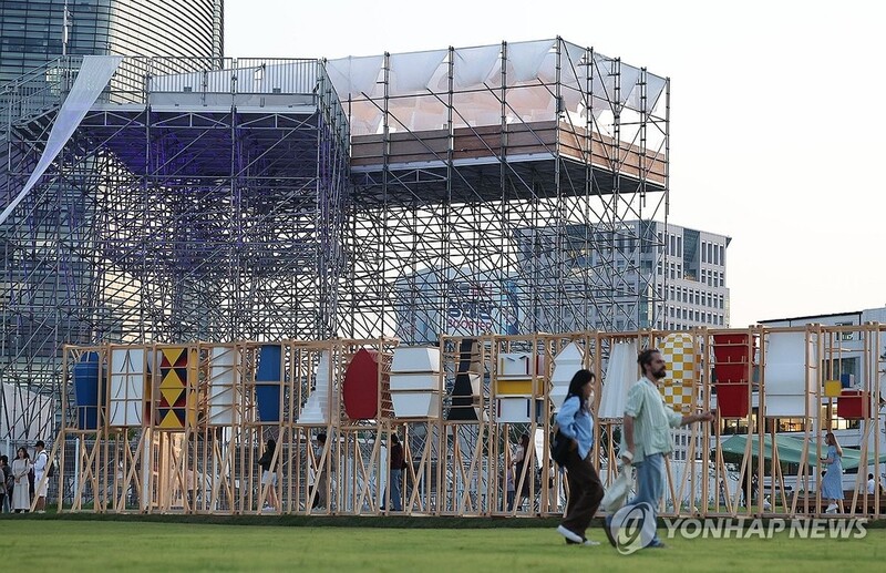 | ▲ 송현광장에 전시된 비엔날레 작품들 제4회 서울도시건축비엔날레가 개막한 9월 1일 오후 서울 종로구 열린 송현녹지광장에서 시민들이 전시물을 둘러보고 있다. [연합뉴스 자료사진] |