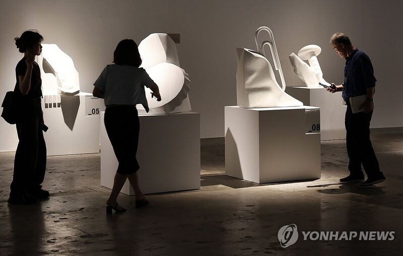 | ▲ 디자인, 혁신이 되다 9월 5일 오전 광주 비엔날레전시관에서 제10회 광주디자인비엔날레 프레스 오픈 행사가 열려 취재진들이 디자인의 혁신을 이룬 조각 작품을 살펴보고 있다. 광주디자인비엔날레는 'Meet Design' 주제 오는 7일 개막해 두달간 광주비엔날레 전시관과 시립미술관 등 광주 곳곳에서 열린다. [연합뉴스 자료사진] |