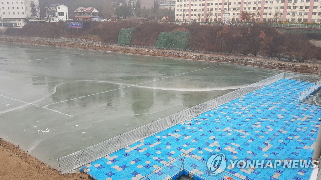 이곳도 영하 12도까지 내려가는 아침 기온에 홍천강 얼음두께가 3cm 이상 얼어붙어 이번 주말부터 대형천막 설치 등에 나설 예정이다.
