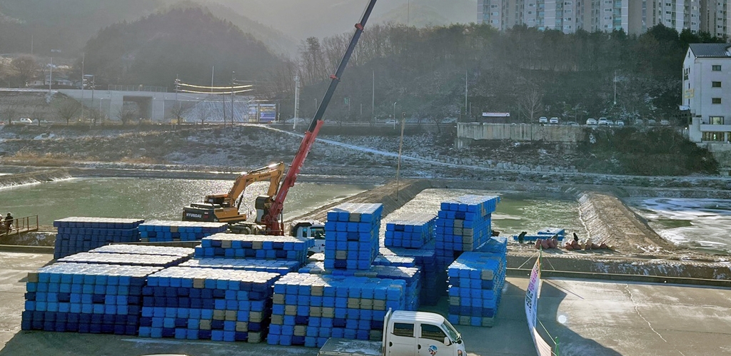| ▲ 시설물 설치하는 화천산천어축제장 [화천군 제공.재판매 및 DB 금지] |
