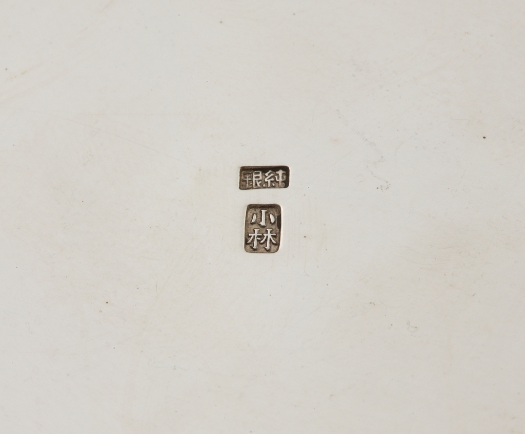 | ▲ '은제이화문화병' 바닥 부분의 모습 유물 바닥 부분에 있는 '小林(고바야시)' 압인. 사진은 등록이 말소되기 전 국가문화유산포털에 게시된 것 [문화재청 국가문화유산포털 제공. 재판매 및 DB 금지] |