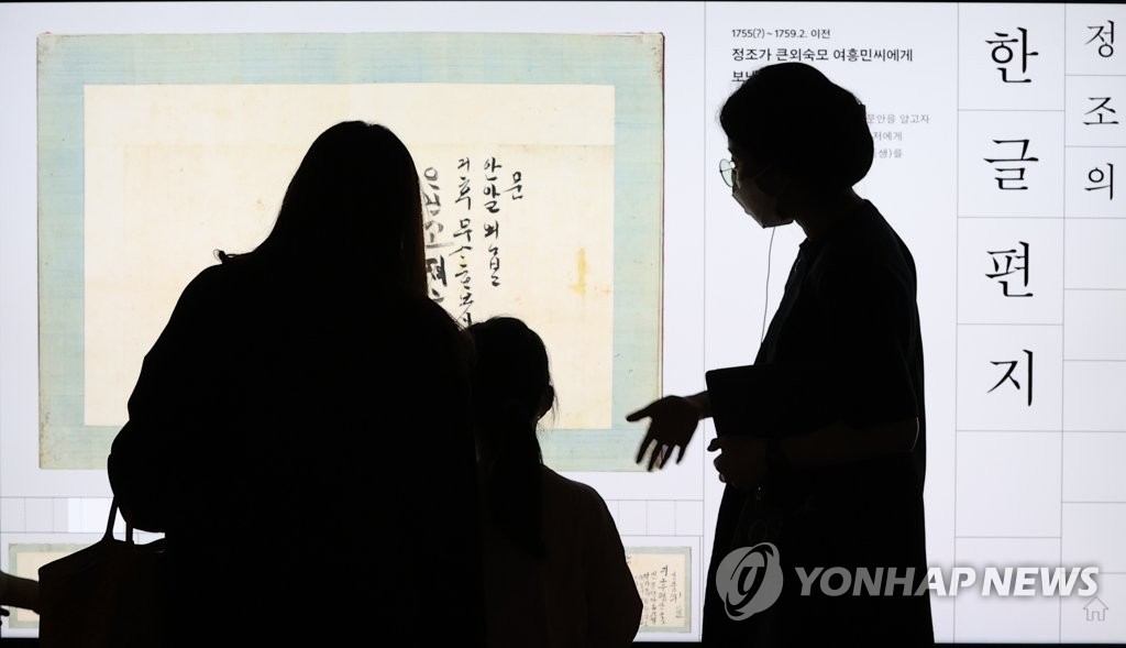 | ▲ '고맙고 소중한 우리 한글' (서울=연합뉴스) 서대연 기자 = 4일 오후 한 가족이 서울 용산구 국립한글박물관에서 해설사의 설명을 듣고 있다. 문화체육관광부는 10월 9일 한글날을 기념해 이날부터 10일까지를 2022년 한글주간으로 지정하고 8일 오후 열리는 '한글주간 전야제' 등 기념행사, '고마워 한글' 포토존 등 다양한 체험행사를 진행할 예정이라고 밝혔다. 2022.10.4 dwise@yna.co.kr |