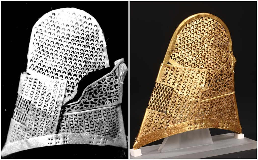 | ▲ 국보 '천마총 관모' 1973년 발굴 조사 보고서에 실린 사진과 현재 모습. [문화재청 국가문화유산포털 제공. 재판매 및 DB 금지] |