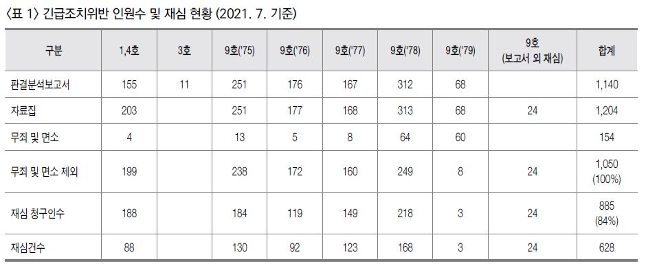 | ▲ 긴급조치위반 인원수 및 재심 현황 [진실화해위 자료집 캡처. 재판매 및 DB 금지.] |