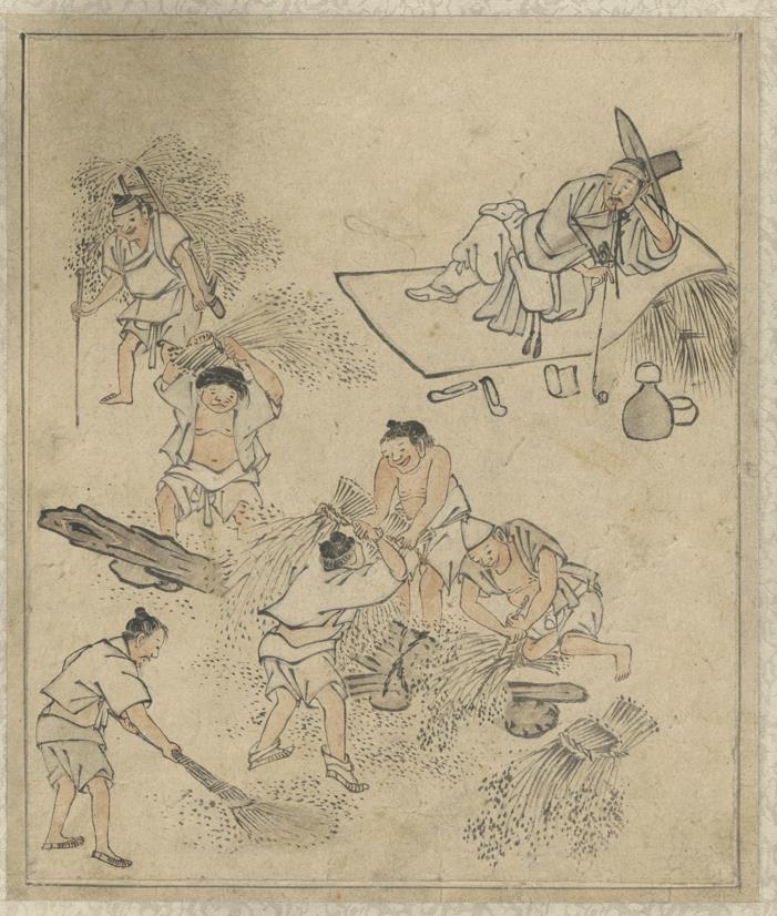 | ▲ 단원 풍속도첩의 '벼 타작' [전국박물관소장품검색 누리집 'e뮤지엄' 제공. 재판매 및 DB 금지] |