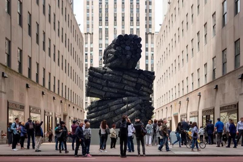 | ▲ 뉴욕 록펠러센터 채널가든에 세워진 이배 작가의 대형 숯 조각 '불로부터' [록펠러센터 홈페이지 캡처] |