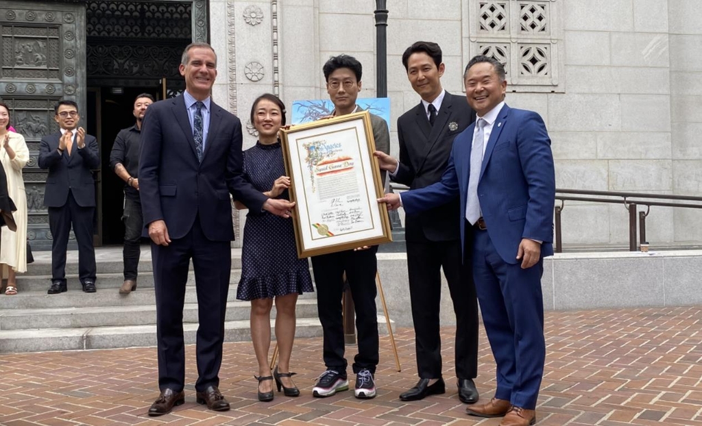 지난달 LA 시의회는 매년 9월 17일을 오징어 게임의 날로 제정하는 결의안을 채택했고, LA시는 이날 선포식을 통해 이 드라마가 아시안·태평양 커뮤니티의 발전과 화합에 미친 공로를 기념했다.