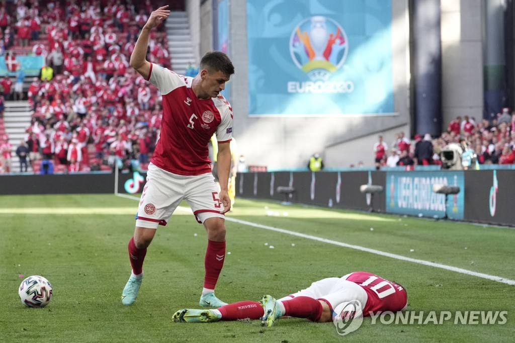 | ▲ 6월 유럽선수권 도중 경기장에 쓰러진 에릭센(오른쪽) [AP=연합뉴스] |