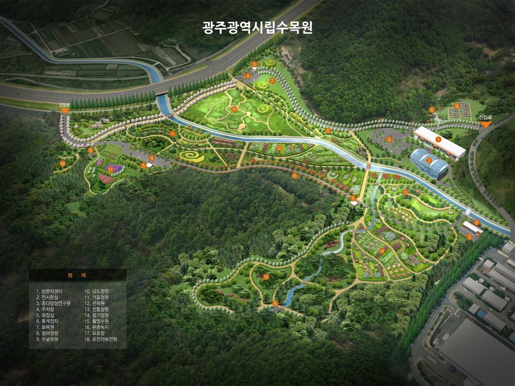 시립 수목원은 광주 남구 양과동 일원 24만7천㎡에 470억원을 투입해 남도 숲 등 3개 지구, 가을 정원 등 9개 정원, 향기원 등 총 15개 테마로 구성한다.