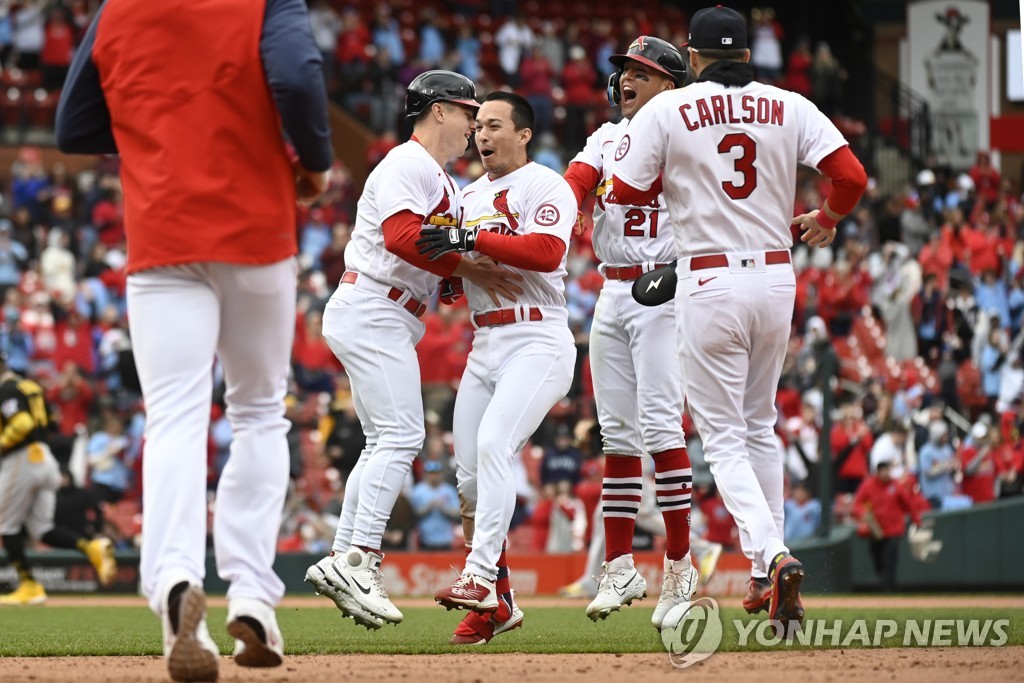 에드먼은 17일(한국시간) 미국 미주리주 세인트루이스 부시 스타디움에서 열린 2023 미국프로야구 메이저리그(MLB) 피츠버그 파이리츠와 홈 경기에서 연장 10회 말 5-4로 팀에 승리를 선사하는 끝내기 안타를 쳤다.