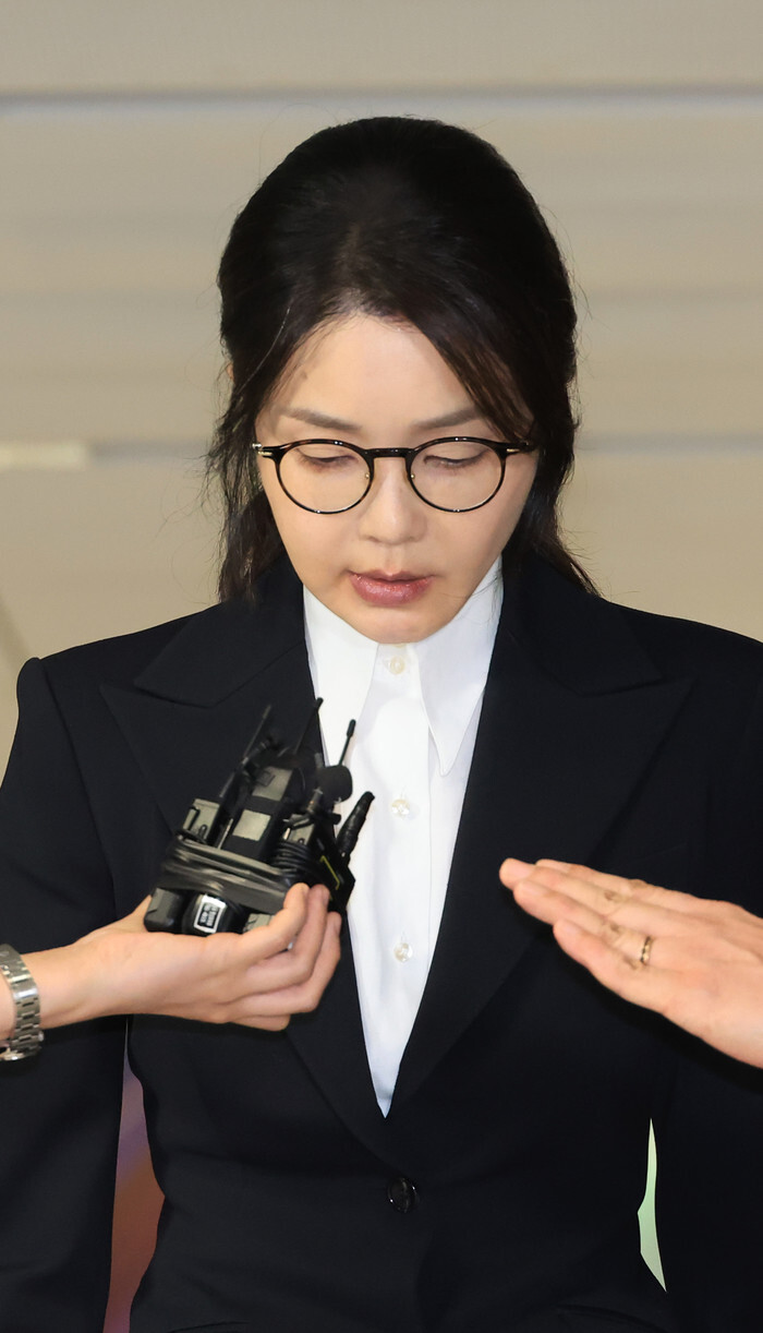 Kim Keon Hee, wife of former President Yoon Suk Yeol, keeps mum as she leaves the office of special counsel Min Joong-ki's team in Seoul on Aug. 6, 2025, after undergoing an 11-hour interrogation by the team about her alleged involvement in stock manipulation schemes, election meddling and other allegations. Kim became the first spouse of a former or sitting president to publicly appear as a suspect in a criminal investigation. (Yonhap)
