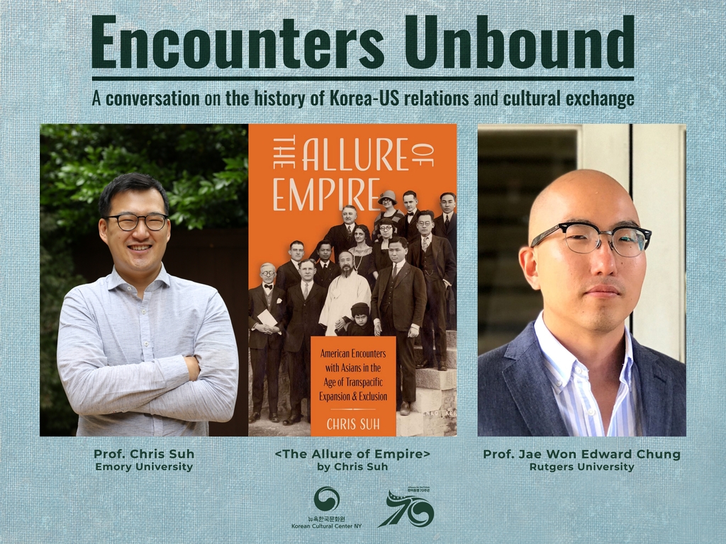▲ 뉴욕한국문화원(원장 김천수)은 오는 25일 오후 7시(현지시간) 뉴욕문화원 갤러리코리아에서 한미동맹 70주년을 기념해 에모리대 역사학자 크리스 서 교수와 럿거스대 정재원 한국학 교수를 초청, 한미교류사에 관한 강연 및 패널토론을 진행한다. 서 교수는 20세기 초반 한국, 미국, 일본의 정치적 역학 관계를 다룬 책 '제국의 유혹'의 저자다. (뉴욕=연합뉴스)