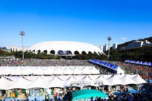 | ▲ The vicinity of the Busan Asiad Main Stadium is crowded with fans waiting to enter the stadium for BTS' concert on Oct. 15, 2022, in this file photo provided by BigHit Music. (PHOTO NOT FOR SALE) (Yonhap) |