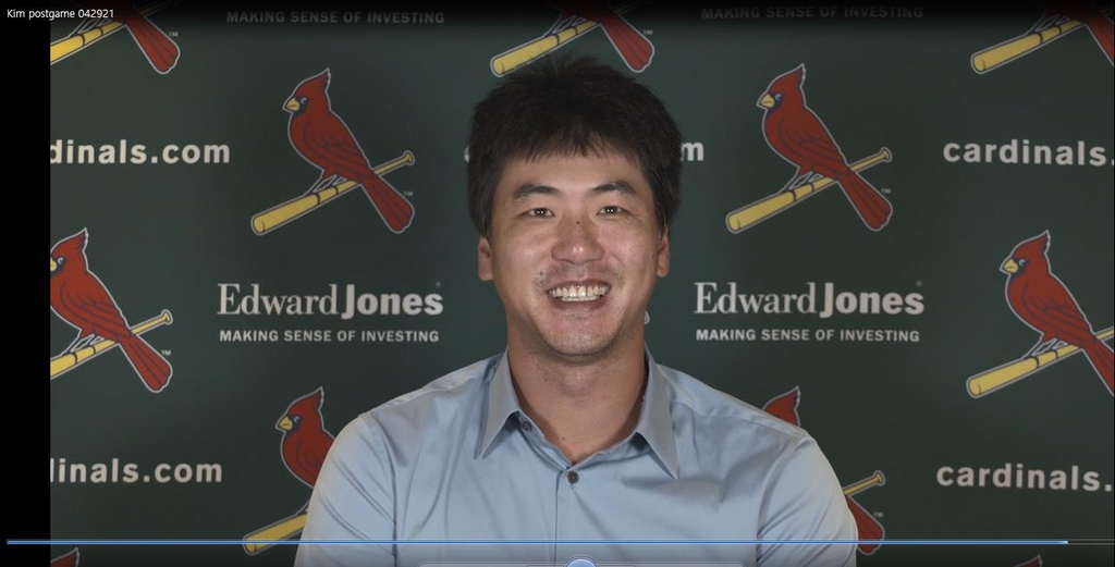 | ▲ 화상 인터뷰하는 김광현 (서울=연합뉴스) 김광현이 30일(한국시간) 미국 미주리주 세인트루이스의 부시스타디움에서 열린 2021 미국프로야구 메이저리그 필라델피아 필리스와의 홈경기 등판을 마치고 화상 인터뷰를 하고 있다. [MLB 프레스박스 화상 인터뷰 영상 캡처. 재판매 및 DB금지] |