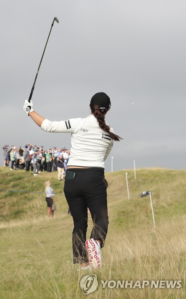 | ▲ In this Associated Press photo, Kim Sei-young of South Korea hits a shot out of the rough on the 16th hole during the final round of the AIG Women's Open at Carnoustie Golf Links in Carnoustie, Scotland, on Aug. 22, 2021. (Yonhap) |