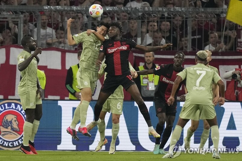 | ▲ 레버쿠젠과 경기에서 공중볼 경합을 하는 김민재(왼쪽 두 번째) [AP=연합뉴스] |