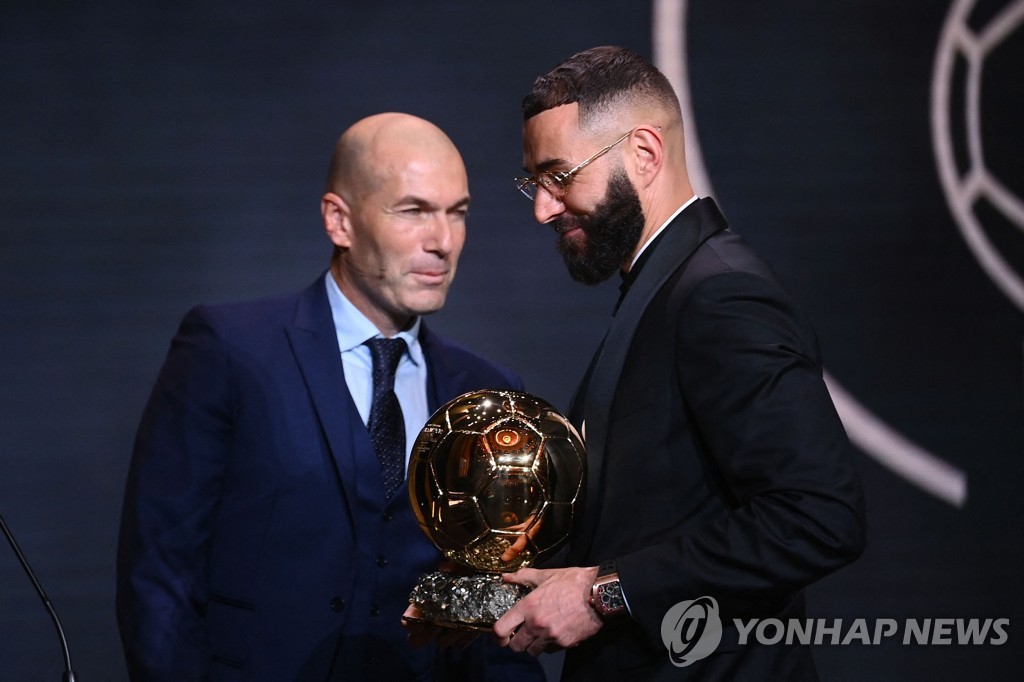 이날 벤제마는 지단에게 발롱도르 트로피를 건네받으며 포옹을 나누기도 했다. 벤제마는 지난해 발롱도르 투표에선 4위를 차지한 바 있다.