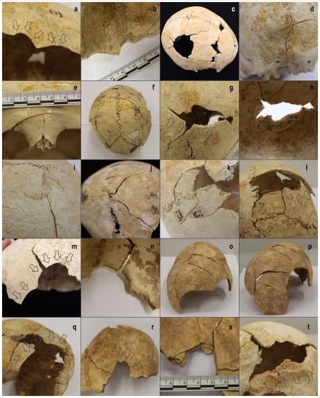 | ▲ 신석기시대 매장지 SJAPL에서 발굴된 두개골의 치유되지 않은 손상들 [Scientific Reports/Teresa Fernández-Crespo et al. 제공. 재판매 및 DB 금지] |
