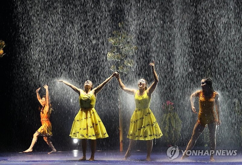 (서울=연합뉴스) 최주성 기자 = 무대에서 연기를 펼치는 배우의 머리 위로 시원한 물줄기가 쏟아지자 객석에서는 탄성이 새어 나오기 시작했다.