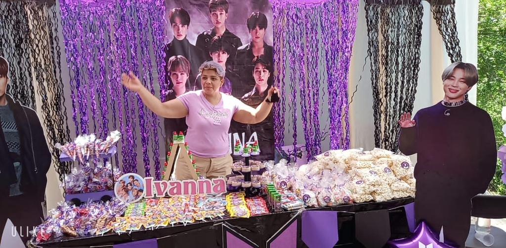 (멕시코시티=연합뉴스) 고미혜 특파원 = 보라색 풍선과 천, 리본으로 꾸며진 파티장 안에 DJ가 틀어주는 방탄소년단(BTS) 노래가 쉴새 없이 울려 퍼진다.