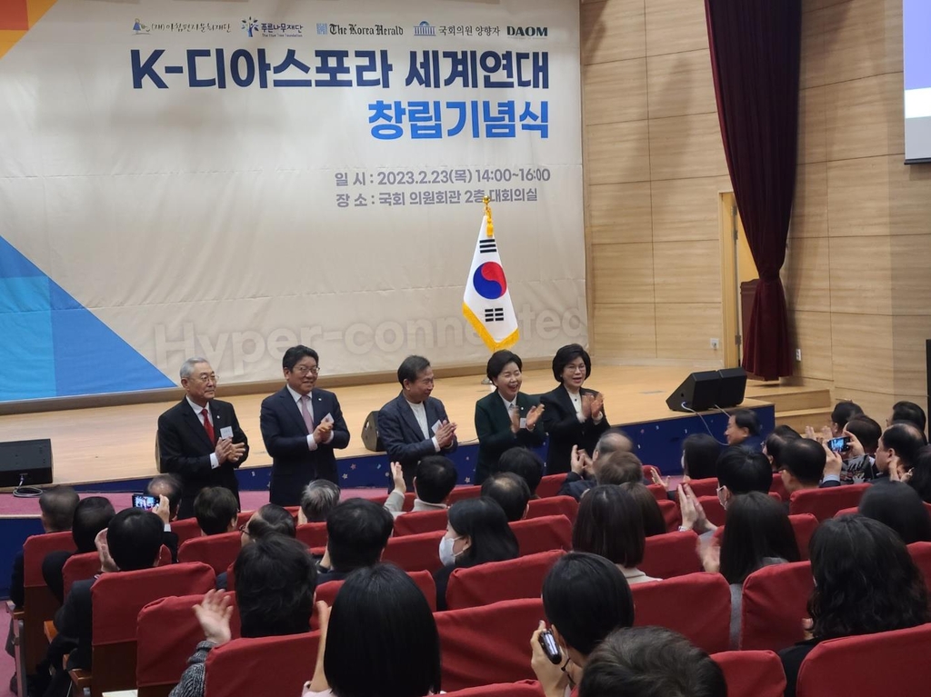(서울=연합뉴스) 강성철 기자 = 재외동포 차세대 육성을 위해 시민단체·정치인·기업 등이 참여한 'K-디아스포라 세계연대'가 23일 국회의원회관 대회의실에서 창립식을 개최했다.