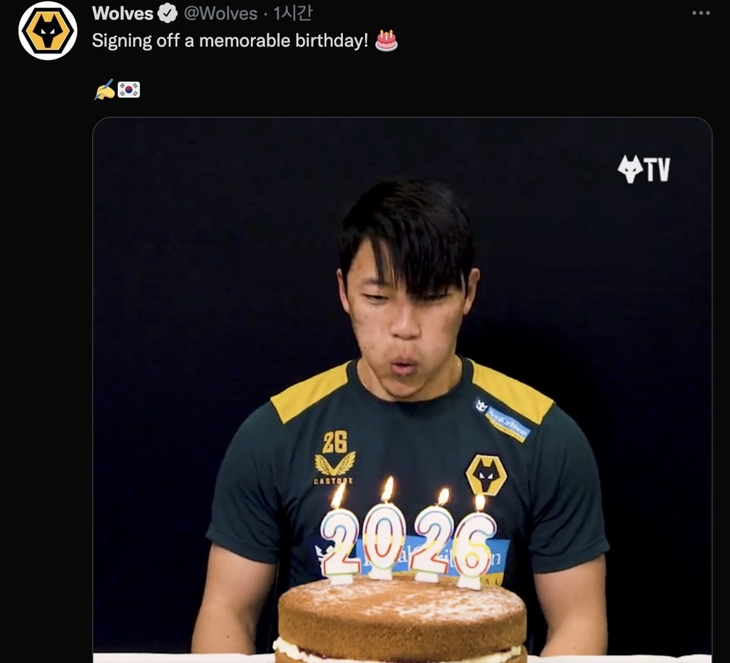 황희찬의 26번째 생일을 축하하는 트윗도 함께 올렸다. 황희찬은 1996년 1월 26일생이다.