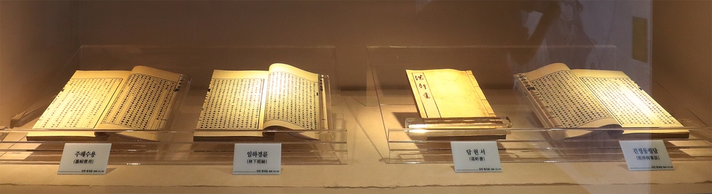 | ▲ 홍대용의 저서들. 왼쪽부터 주해수용, 임하경륜, 담헌서, 건정동필담.[사진/조보희 기자] |