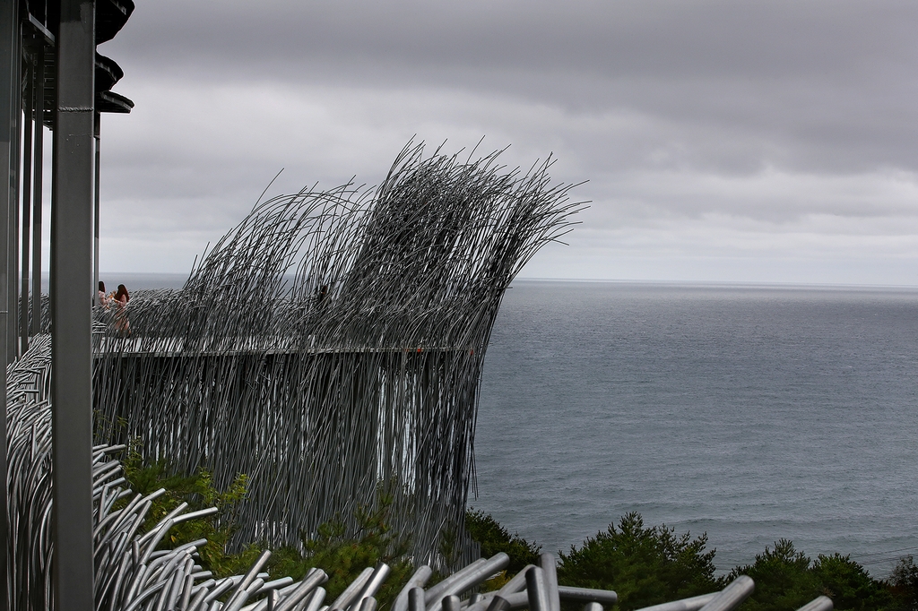 (강릉=연합뉴스) 김희선 기자 = 파도처럼 솟구치는 은빛 조형물 너머로 드넓은 바다와 하늘이 펼쳐진다.