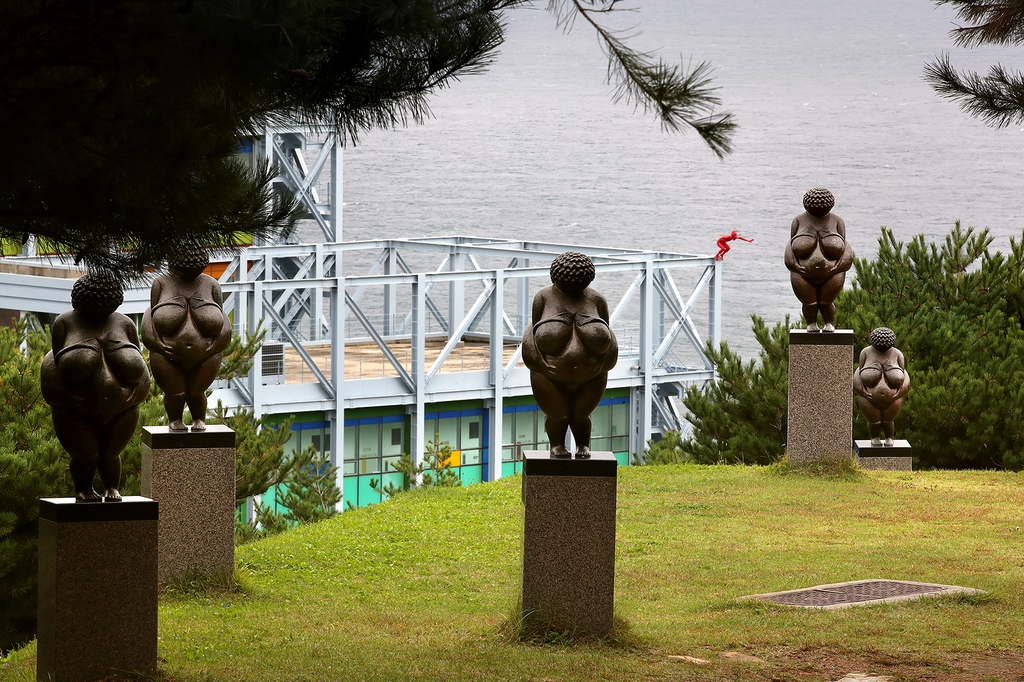 공원 곳곳에 놓인 설치·조각 작품이 초록빛 숲과 푸른 바다, 그리고 하늘과 어우러져 독특한 풍경을 만들어낸다.