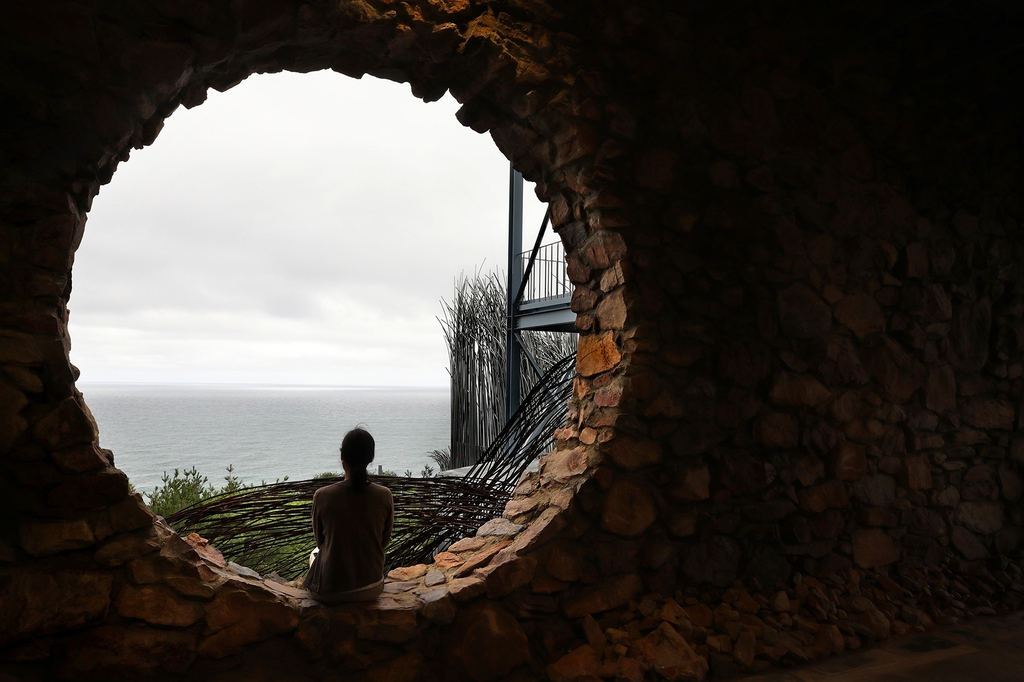 하슬라아트월드에서 가장 인기 있는 돌벽 포토존이다. 바다를 향해 나 있는 둥근 창 위에서 포즈를 취하면 '인생샷'을 건질 수 있다.