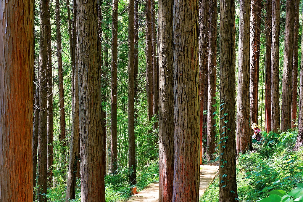| ▲ 아홉산숲 산책로에서 휴식을 취하는 탐방객 [사진/전수영 기자] |