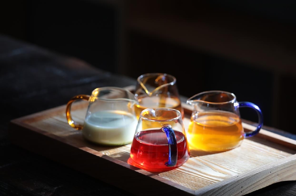 이곳에선 다양한 블렌딩 홍차를 마실 수 있도록 메뉴를 세트로 구성했다. 진한 갈색의 잭살 홍차 이외에도 빨갛고 노란 블렌딩 홍차가 어우러진 모습이 이색적이다.