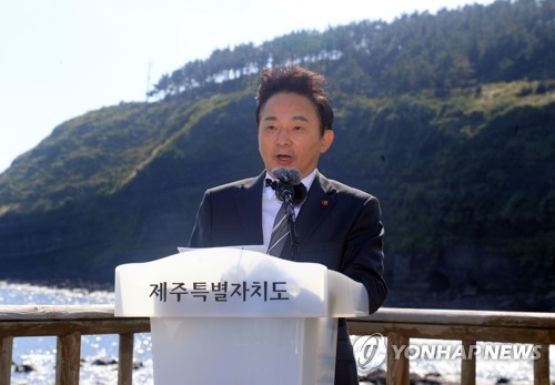 | ▲ 송악 선언하는 원희룡 제주지사 (서귀포=연합뉴스) 원희룡 제주지사가 지난달 25일 오전 서귀포시 대정읍 송악산에서 기자회견을 열고 난개발을 둘러싼 우려를 불식시키기 위해 현재 제주에서 진행 중인 대규모 사업에 대한 입장을 밝히고 있다. [연합뉴스 자료사진] |