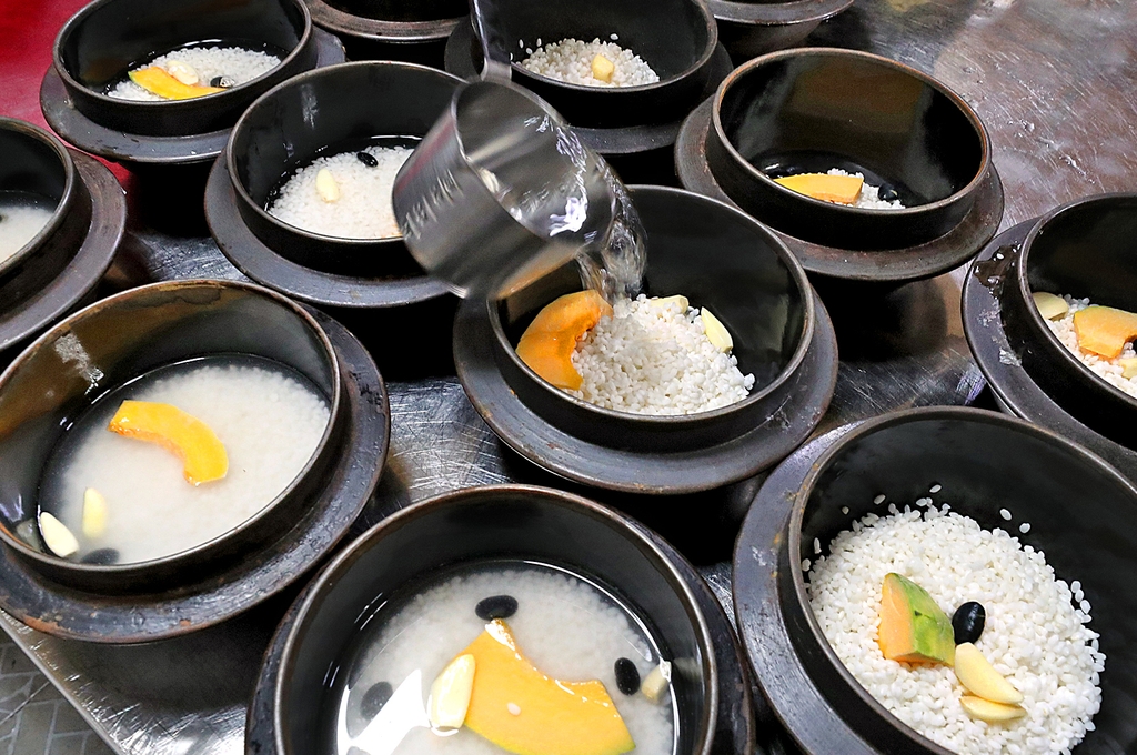 | ▲ 마늘 4∼5쪽과 단호박, 검은콩을 넣어 짓는 마늘 솥밥 [사진/조보희 기자] |