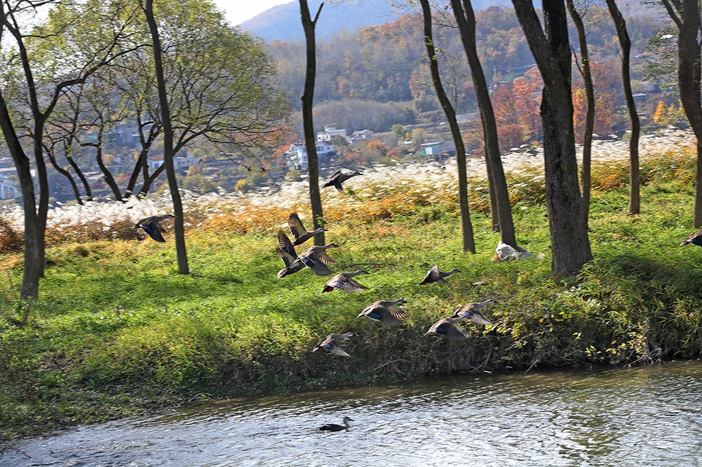 공원 곳곳에 뭉텅이진 억새는 늦가을의 주인공이었다. 북쪽에서 날아온 청둥오리들은 어느새 강에 터를 잡아 겨울날 준비를 마친 것처럼 보였다.