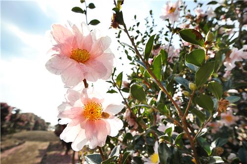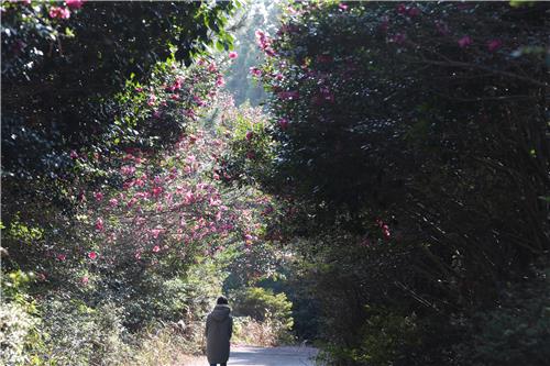 | ▲ 경흥농원 내 오솔길에 늘어선 애기동백이 흐드러지게 꽃을 피웠다. [사진/전수영 기자] |