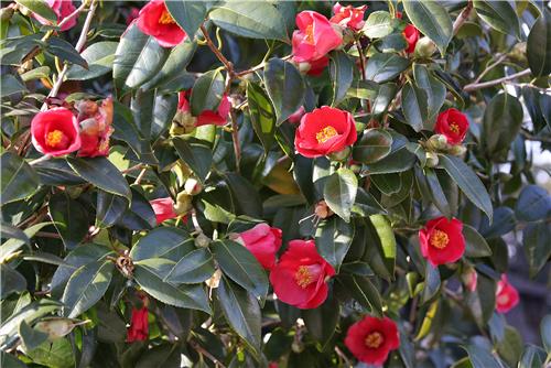 애기동백은 토종동백보다 훨씬 더 빨리 자라는 데다 꽃도 더 화려하게 피어 조경용으로 인기를 얻고 있다.