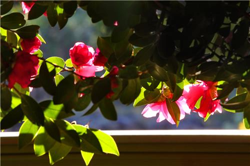 | ▲ 아침 햇살에 반짝이는 애기동백 [사진/전수영 기자] |