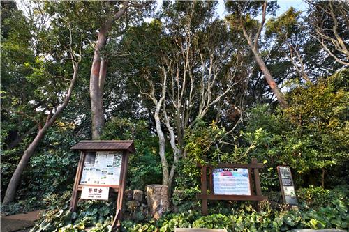 숲의 규모는 800평으로 그리 크지 않지만, 300년 넘은 토종동백나무를 비롯해 다양한 난대 수종이 어우러져 한겨울에도 생기 넘치는 초록빛을 선사한다.