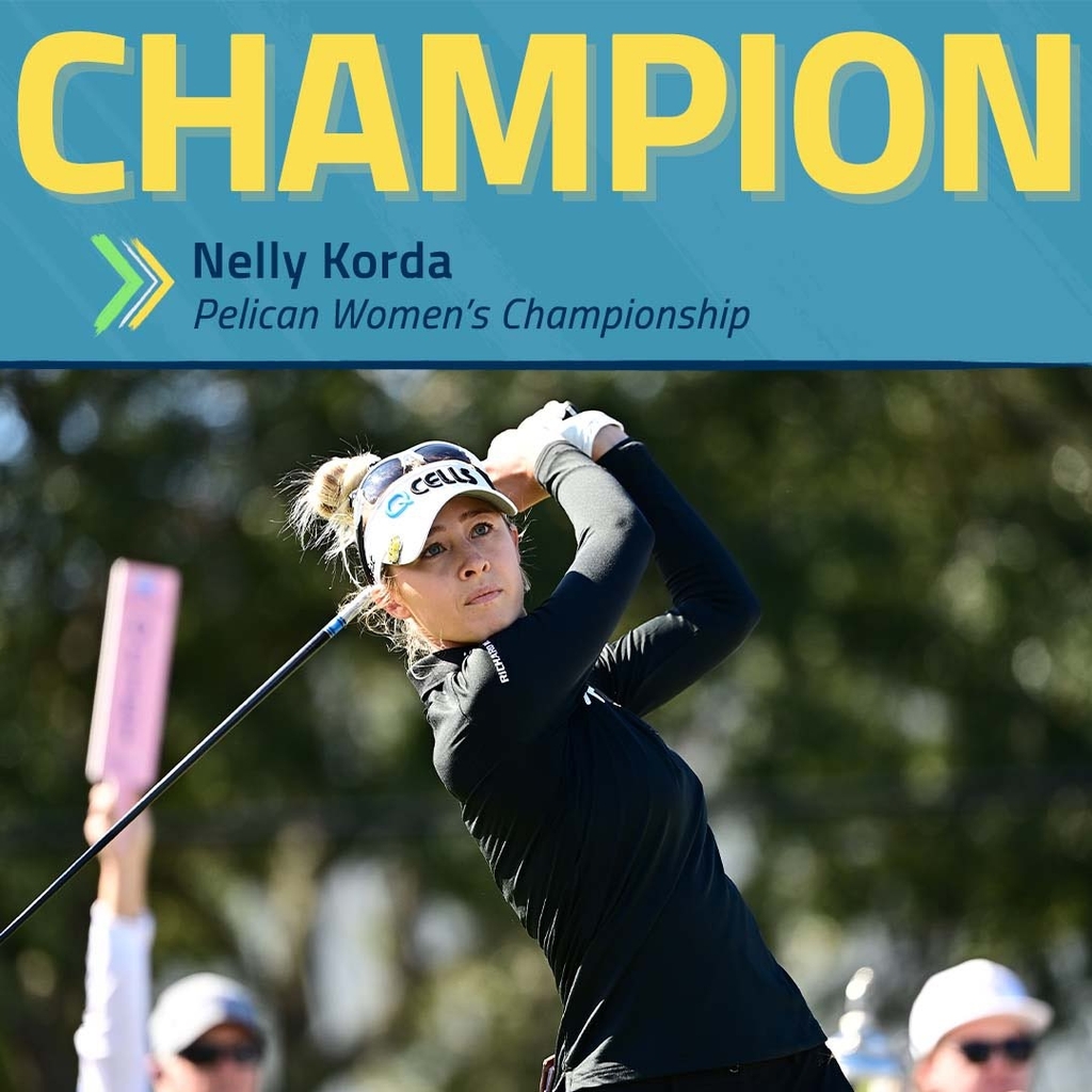 (서울=연합뉴스) 김동찬 기자 = 여자 골프 세계 랭킹 1위 넬리 코다(미국)가 미국여자프로골프(LPGA) 투어 펠리컨 챔피언십(총상금 175만 달러)에서 우승했다.
